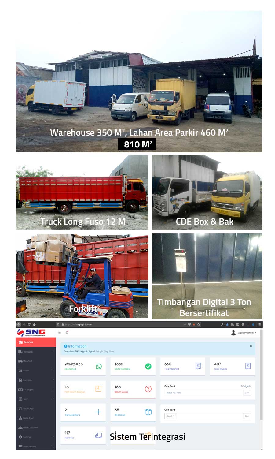 Kami PT. Sinar Niaga Gemilang, yang sekarang dikenal dengan nama SNG Logistic sudah berdiri dan menjalankan bisnis Expedisi sejak tahun 2015, hingga kini SNG Logistic berupaya melebarkan sayapnya dalam memperluas area operasional maupun titk-titik daerah yang menjadi sasaran supply pengiriman barang. Jadi bukan hanya melayani pengiriman di perkotaan saja, tapi juga ke pulau - pulau terluar kami layani baik itu skala retail, corporate maupun project.